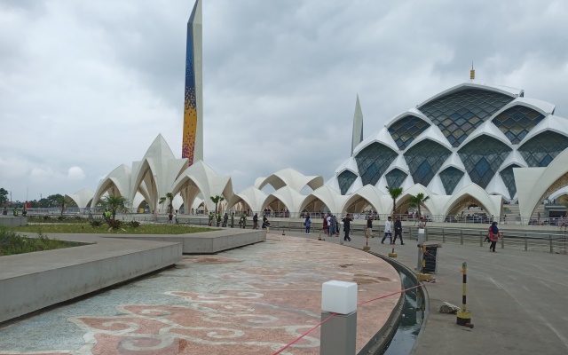 Asrinya Kawasan Masjid Raya Al Jabbar Tanpa PKL. Foto diambil Jumat, 24 Februari 2023, Pkl 11.30 WIB menjelang Shalat Jumat. Kawasan Masjid Raya Jawa Barat dijaga aparat TNI (Babinsa) dan bebas PKL . Kawasan masjid tampak bersih, segar, asri.