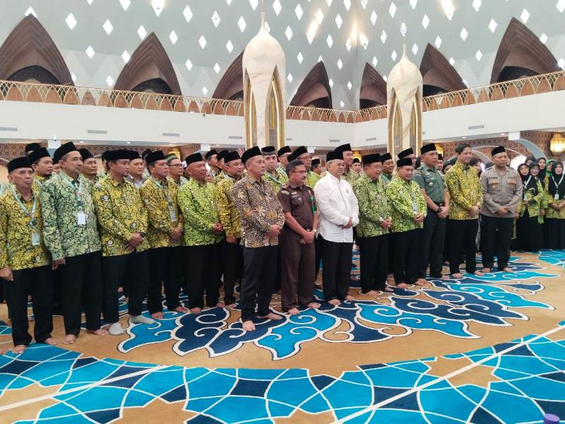 Ketua Umum Dewan Masjid Indonesia (DMI), HM Jusuf Kalla, didampingi Pj Gubernur Jawa Barat Bey Machmudin melantik Pengurus Pimpinan Wilayah (PW) DMI Jawa Barat 2024-2029 di Masjid Raya Al Jabbar, Senin (14/10/2024).