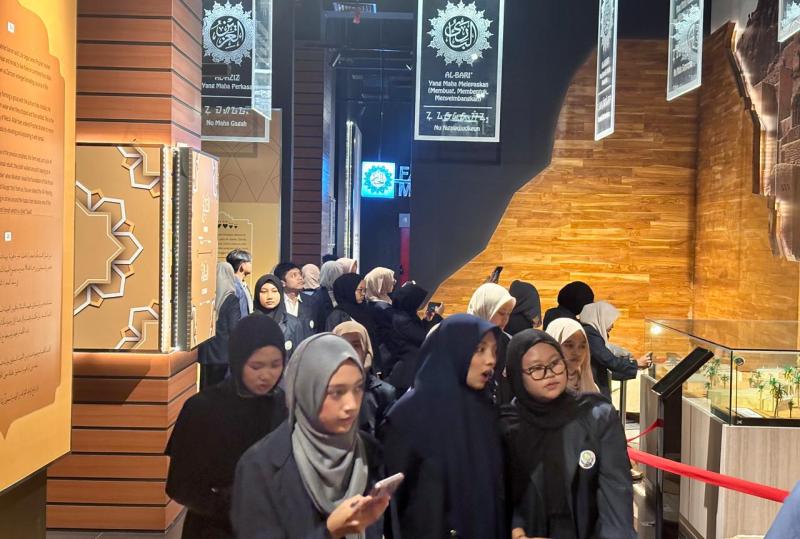 Setelah melakukan workshop, para mahasiswa KPI melanjutkan kegiatan dengan mengunjungi Galeri Rasulullah Saw yang ada di lantai dasar Masjid Raya Al Jabbar. Kunjungan ini bertujuan untuk menambah referensi sekaligus memahami lebih dalam sejarah perjalanan hidup Rasulullah Muhammad Saw.