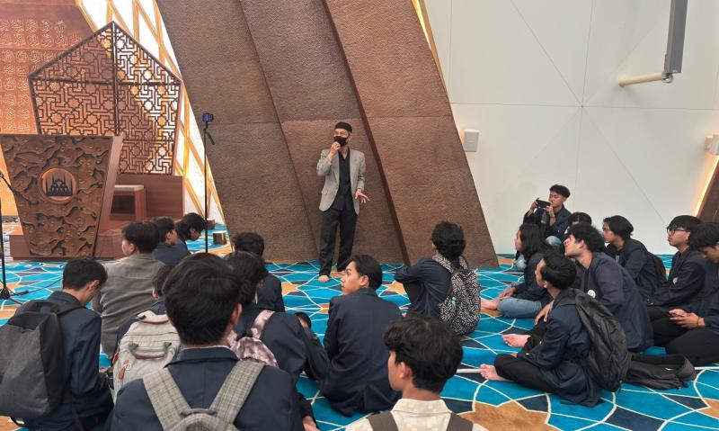 Mahasiswa semester tiga jurusan Komunikasi dan Penyiaran Islam Universitas Islam Negeri Sunan Gunung Djati (KPI UIN SGD) Bandung menggelar workshop tentang penulisan berita dakwah berbasis masjid di Ruang Edukasi Masjid Raya Al Jabbar Bandung, Rabu (8/10/2025).