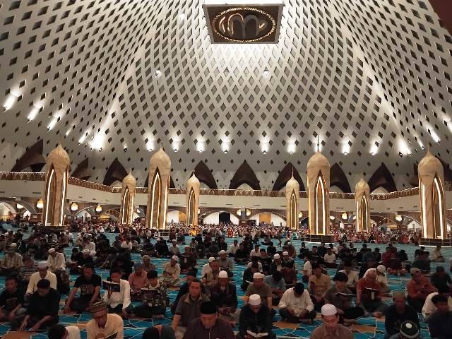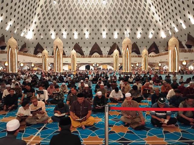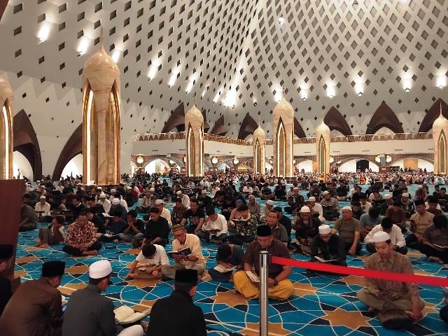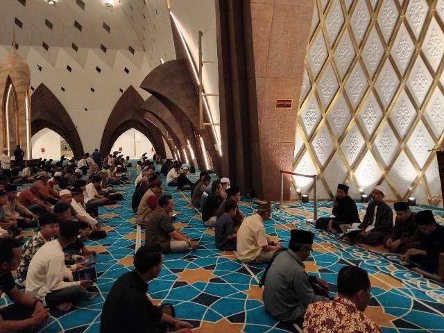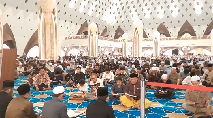 Ribuan orang mengikuti acara malam Nishfu Sya’ban di Masjid Raya Al Jabbar pada Sabtu (24/2/2024) bada Maghrib. Dipimpin Imam Masjid Raya Al Jabbar, Ust. H. Sandi M. Yusuf, acara malam Nishfu Sya’ban diisi dengan tausiah dan pembacaan QS Yasin berjamaah.